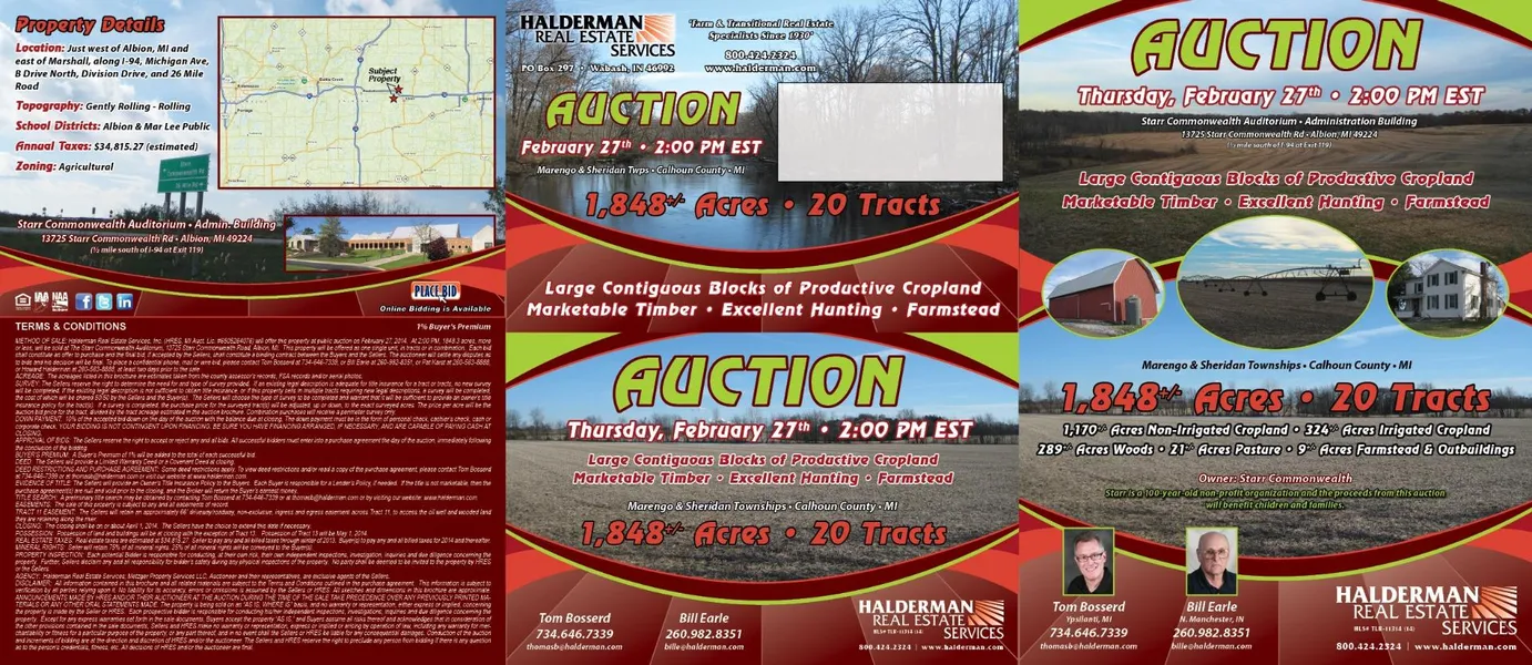 Auction Location: Starr Commonwealth Auditorium: 13725 Starr Commonwealth Road, Albion, MI 49224