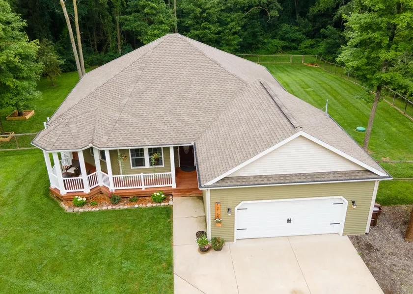 Discover unparalleled privacy and luxury in this stunning 2017 home, nestled on nearly 3 acres of serene woodland just 1.5 miles from the heart of Battle Creek. With 2,600 finished square feet, this move-in-ready gem boasts a harmonious blend of elegance and comfort. Step inside to find an open-concept layout highlighted by hand-scraped bamboo hardwood floors and vaulted ceilings. The gourmet kitchen features quartz countertops, stainless steel appliances, and a center island with a snack bar. French doors open to a charming deck, perfect for savoring morning coffee or entertaining guests. The main floor includes a master suite with a walk-in closet and a spacious bath featuring a tile and glass shower, along with two additional bedrooms and a full bath. The walkout level is an entertainer's dream, with a large recreation area, a personal gym, a home theater, and a covered patio. An full bath and ample storage complete this level. Outside, a wrap-around deck offers panoramic views of the fenced-in yard, an oversized fire-pit, and lush surroundings. The property also includes an oversized 2-car garage and a large storage shed. Embrace the perfect blend of nature and convenience in this exquisite home you won't want to miss it!