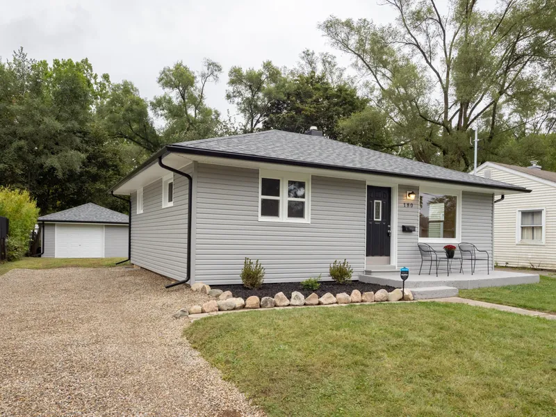 Brand new throughout and completely updated. New siding, gutters, roof, windows, doors, furnace, water heater, flooring, and entire bathroom! It doesn't end there! Brand new electrical service upgrade, plumbing and hard wire smoke alarms. Modern updates like shiplap ceilings in bedrooms and kitchens along with crown molding and can lights in living room. You won't want to miss this opportunity to just move in and not have to do a thing for many, many years! 1 1/2 car garage also has new roof and siding with plenty of extra space for yard items or storage.