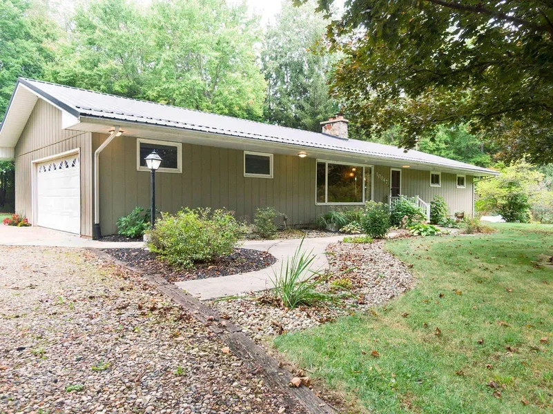 17+ acres, 30 x 40 POLE BARN + 220 electric w/ heat. Woods w/fabulous HUNTING! Deer Blinds are a gift to you! Great property for home stedding, raspberries, 50 x 50 vegetable garden, tillable area if you wish, but WAIT... from entering this MID CENTURY Modern 1970 custom built home it provides a warm feeling immediately. It's a WOW factor w/ design: Field stone walls w/ fire place, spectacular elegance including a rustic feel. Smooth & smart floor plan & convenience of everything it offers. Roomy, great storage & impressive surprises throughout. Update to your liking. Walk out basement to a paradise! 17-110-027-00 included in sale. Come SEE! Call your Lady Dy or your favorite Realtor!