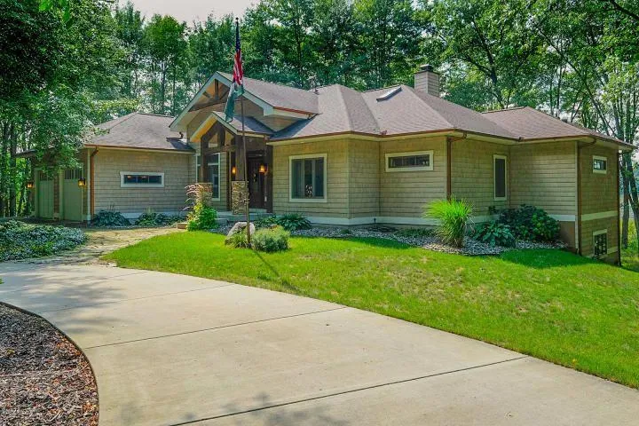 Marshall-Waterfront-Beautiful Post & Beam Timber Frame home nestled on 19 secluded acres overlooking private, nature filled Mud Lake. Uncompromising quality throughout this 5000+ sq.ft. 4 bed/3 bath home. An open floor plan, the Great room boasts 19' ceilings w/ stunning tall timbers of Douglas Fir, Wood burning Fireplace, White Aspen ceilings & entrance to the Covered Deck from which to enjoy the sights & sounds of nature. Spiral stairs lead to the loft office. Custom gourmet kitchen is a cook's dream! Granite & Quartz counters accent custom cabinetry featuring Wolf & SubZero Stainless Steel Appliances. Center Island w/built in Warming Drawers,Desk & seating. Main Floor Master has Gas Fireplace,Heated Bath Floor, & private deck. Walkout level is finished w/kitchen, bedroom/full bath, Exercise room & den. Studio space is ideal for the artist or craftsman. A Pole Barn sits tucked in the woods for additional workspace and storage. This one owner home has been designed with great detail & exemplary craftsmanship. Call today for your private tour!
