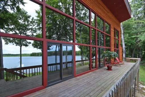 The setting and views take your breath away on this rare find. Cotton Lake lakefront with 5 acres of property and contemporary architecture featuring over 4,000 sq feet.