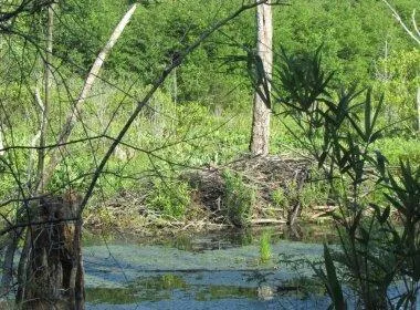 large bottomland hardwood drain currently flooded with beaver impoundments. The