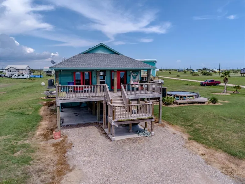 Great view of the bay!!! Come see this cute 2 bed, 2 bath home that is situated perfectly facing west for beautiful sunsets over Carancahua Bay. This lovely home has an awesome deck for relaxing, nice interior colors throughout, storm windows with hurricane covers w/interior control, jetted/heated tub in bathroom, stainless kitchen appliances, island that doubles as kitchen table, washer/dryer, walk-in pantry. Downstairs the house has a huge storage area on its own breaker that can easily be converted into a 3rd bedroom with bathroom. A fun outdoor theater area for movie night with family and friends and an above ground swimming pool! There is also a fish cleaning center for the fisherman in the family. There is a community pool, community center, boat ramp and other amenities. This is a great place you don't want to miss out on!
