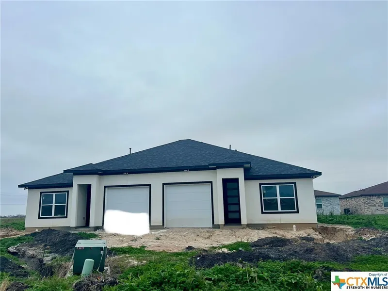 3 bedroom, 2 bathroom, stucco unit with a one car garage (half of a duplex) in Claret Crossing. Living space is 1380 square feet. Open concept with porcelain floors and quartz countertops throughout. Washer/dryer in laundry room. The shared double wall between the units is fireproof. HOA is $680/year per lot.