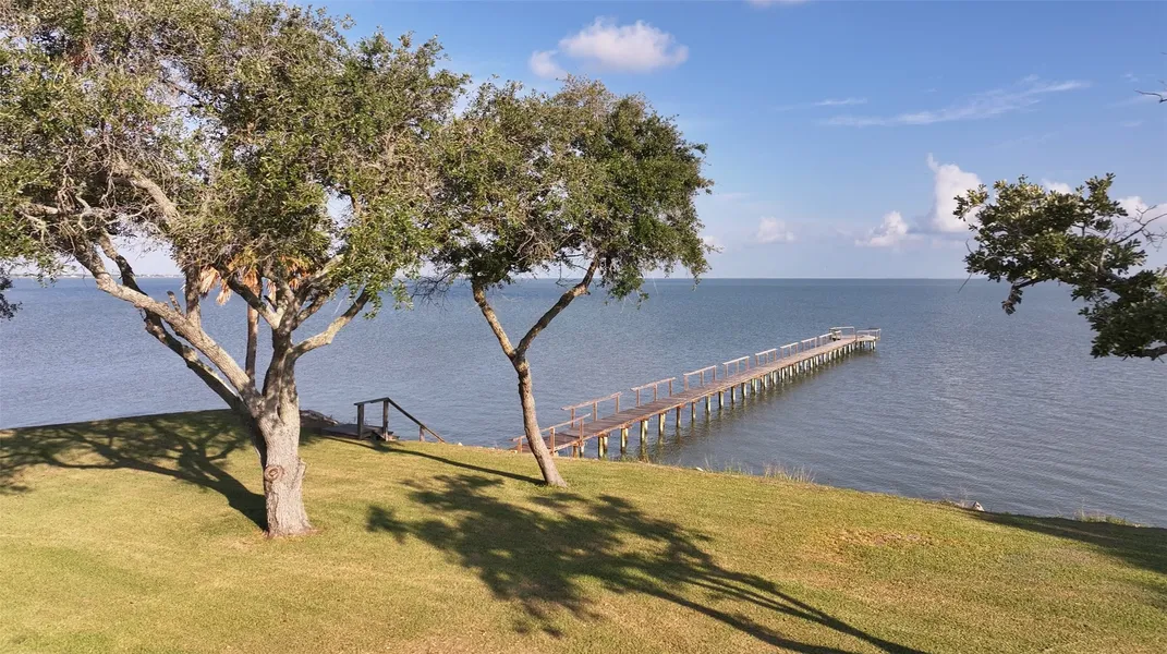 WATERFRONT ESTATE. Luxurious relaxing or fishing paradise has 3/3/3 home 20 feet above the shores of Lavaca Bay with infinity pool and 530 feet of waterfront. Pier is 270 feet long. One doesn't have to fish to enjoy the ambiance of this amazing property. Designed by architect originally for himself. This is "poured-in-place concrete" also called ICF construction. It has 3235 sq. ft. of a/c space. Home has owned security system, Japanese soaking tub, crown molding, large pantry, wet bar, high ceilings, large walk-in closet. Casita/3rd bedroom has full kitchen, bathroom and Murphy bed. Porch connecting main house to casita has motorized screens and storm shutters. Also, newly installed motorized storm shutters on each window and outside door. Sightings of dolphins, pelicans, seagulls, ibis and shrimp boats abound.