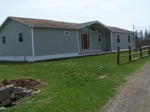 #00281 - Enjoy country living with this 1761 sq. ft. 3 bedroom, 1.75 baths ranch style home sitting on 1 acre. The kitchen and dining room has laminate flooring and is equipped with oak cabinetry. Dining room has French doors leading to covered side deck that overlooks the property. Spacious living room has carpet and paneling. It also has a 360 sq. ft. rec room. Bedrooms are carpet and paneling. Master bedroom has a .75 bath. The home has forced air gas heat and central air, public water and septic. Exterior consists of vinyl siding and a shingled roof with concrete covered front porch. Property has large back yard and is all open ground. Property has good access and is located north of small town of Grantsville with Route 16 road frontage. Priced at $79,900.