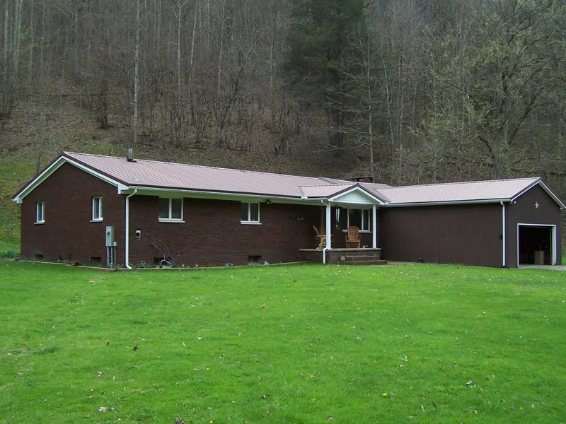 #00486 PRICE REDUCED!! Enjoy country living with this 2,146 square foot brick ranch with an attached 2 car garage situate on 7.34 acres in Southern area of Calhoun County, WV. The home offers 3 bedrooms, 1.5 baths, eat-in kitchen, living room and den/family room. The master bath has a jetted tub. Beautiful woodwork can be seen throughout the home and the den/family room has a wood burning fireplace. This home has forced air natural gas heat, central a/c, a backup whole house natural gas generator, well water, and septic system. The 2,146 sq. ft. does not include the unfinished full basement. Outside you will find a shed and a barn. This home borders a year round creek and sits along a small paved secondary county maintained road. The concrete driveway has a basketball playing area. Being well maintained and offering low maintenance make this country home even more appealing. Ca...