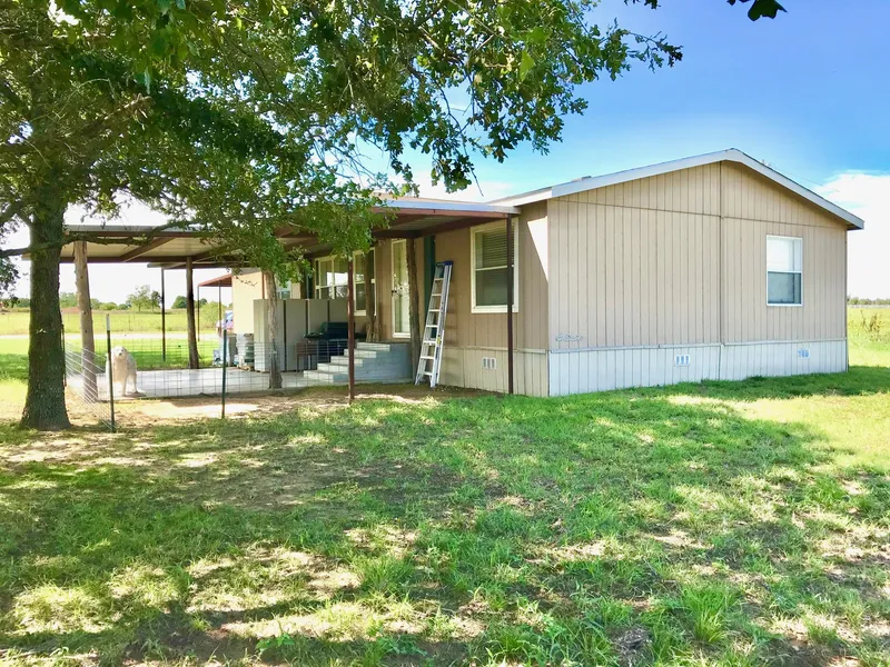 This small acreage property boasts lots of possibility with a 2010 Solitaire Double Wide sitting on the South side of the property along FM 2287. The mobile home is 28x56 for a total of 1,568 sq ft and has 3 bedrooms and 2 bathrooms. This tidy house has a 2-stall metal carport and a metal front porch with patio area for outside entertaining. The interior of the house has carpet in living room, dining room, bedrooms and bathrooms with vinyl flooring in the kitchen and utility room. The kitchen has Formica counter-tops and a pass through to the living room. There are Post Oak and Pecan trees in the front yard for some shade as well as Mesquites in the native pasture. There is a yard fence separating the house and giving some animals room to roam.