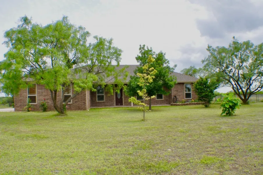 Built in 2012 , this custom brick home on 20 acres possesses a great floor plan and scenic views of the valley and hills off of the back are beyond beautiful! This split floor plan with 3 bedrooms, 2 baths and an office offers effortless functionality. As you enter the front door, you are welcomed by the inviting open concept living area with large brick fireplace, ceramic tiled floor, and inviting kitchen and dining areas - great for family gatherings or entertaining. Kitchen has large island for preparation of meals, extra seating and great for buffet serving. Large master bathroom features a soaking tub and separate walk-in shower. The closet wraps around behind the tub and has enough shelves for all your shoes! Oversized laundry room located off of double car garage allows for extra fridge, freezer, gun safe - whatever you need extra storage for. Out the back door is a large covered patio for enjoying those sunrises and sunsets while watching the wildlife. In the valley below is a pond, surrounded by Live Oak, Mesquite and some Post Oak. Fence on East side is fairly new, fence on South is good and fence on west needs some attention.