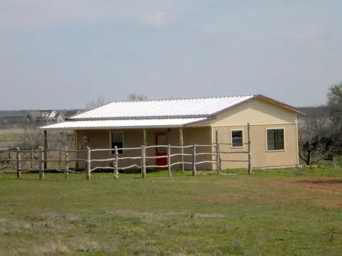 This solid built, well insulated rustic home is small but adorable. The house is 846 sq feet but has an open floor plan with large walk-in closets and a custom shower. There are stained concrete floors throughout and a long covered porch on the front of house. There is a seasonal creek, nice oaks and mesquites as well as a pond behind the house. This place is ready for a weekend or a lifetime, come see it! Owner/Agent
