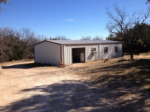 Secluded 16 acres with Live Oaks, Post Oaks, Red Oaks, Mesquites and Cedars approx 3 miles from town. The property has a cozy metal home with textured walls and painted concrete floors. The home is surrounded by trees and sits back off the county road. The sellers ran water, electric and gas to the back of the property where they had planned to build a home. So everything is ready to build your dream home and have a place to stay while building. This property feels very private and peaceful, it is a great get-away or place to spend a lifetime.