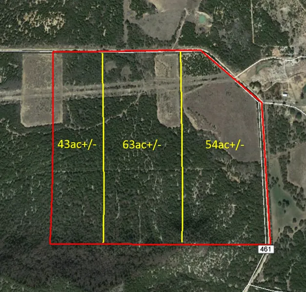 Here are 60+/- acres, to be surveyed, with more acreage available, of heavy cover holdin' the big boys on the north side of the Spring Gap Mountains in the Admiral area. The open fields you see on the aerial are covered in mesquites now but the pipeline has been cleared. Electricity is along the county road. The property is fenced on the north side. No oil production and no minerals to convey. County road 461 borders the property. Callahan county water is available about 1/4 to 1/2 of a mile along CR 461 north of the property.