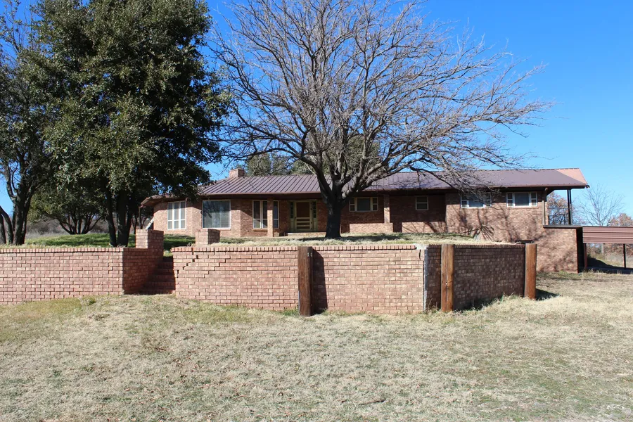 This 4142 sq ft home features 4 bedrooms and 4 full baths. Has large wood burning fireplace on main floor. Kitchen has double stove, range, and dishwasher. Lg. master bedroom features a balcony with beautiful views. Has 4 car garage and 6 car cover. Huge basement with fireplace and full bath. 3BR-2B 1564 sq ft guess house, brick storage building and round pens included. Has 3-4 water wells on this 15 acre property. Additional 46 acres available. Call Linda Camp for more information at 325-280-7294.