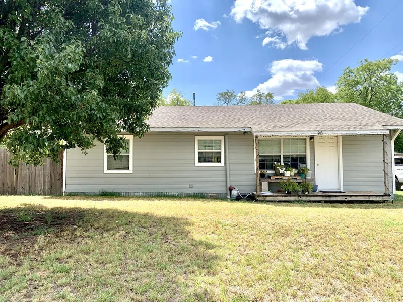 This well maintained 2 bedroom 1 bath located just 2 block from school would make a great 1st home or rental. Spacious living, kitchen and dining area with windows allowing natural light. Covered back porch and a large metal covered carport accessed from alley, all in private back yard with a storage building in back corner of yard. New roof in 2021, exterior painted in 2018. Wood vinyl flooring throughout house for low maintenance. central heat and air. Built-ins in hallway for extra storage or arts and crafts. Come take a look! Current tenant willing to continue renting. Electric Fireplace and Refrigerator.