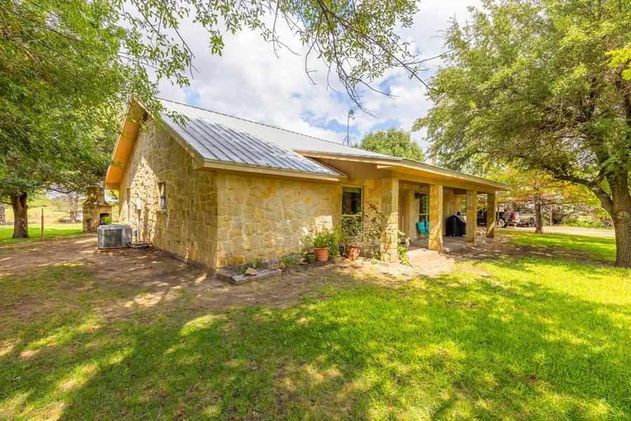 Enjoy quiet country living in this 3-2 rock home with a metal roof sitting on over 4 acres! The beautiful den has a cathedral ceiling, rock fireplace, built in entertainment & storage, lots of light! It adjoins the dining area and kitchen which has a huge tiled peninsula with lots of room for friends and family to gather. The spacious primary quarters has an attached office, walk-in closet and room for a sitting area. Ensuite bath has jetted tub with cedar surround, dual vanity and separate shower. 2nd living has a wood burning stove for cozy winter evenings. The laundry room has a door to the outside so also can serve as a mudroom. Two more large bedrooms and a bathroom with built ins complete the floorplan of this 2,496 sq. ft home. Outside there are 2 porches-one with a fireplace, 3 bay carport, 20x20 storage shed, water well, brick BBQ grill, garden plot, pasture, round pen, chicken coop, and livestock shed. Livestock are welcome. Come sit on porch and watch the wildlife.