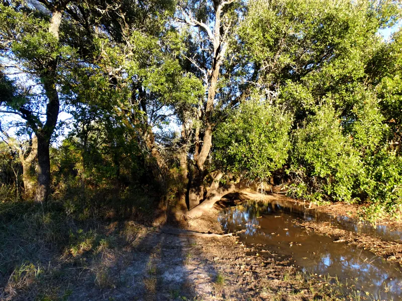This 33.2 acres is covered in trees, mostly oak with some mesquite, and a few cedar. A branch of turkey creek runs through the property. Looking for a great little get away, camping or hunting spot? This just may be the perfect little place! Electric available. Water wells on neighboring properties.