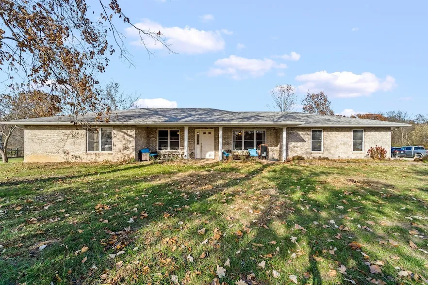 Discover your own private country retreat just outside of Fulton. This charming brick home features four spacious bedrooms and two and a half bathrooms, nestled on 6.91 acres of land with convenient blacktop access. The property includes a small barn equipped with water and electricity, a private stocked pond, and fencing for horses. Interior comforts abound with geothermal heating and a wood-burning fireplace to keep you cozy through winter, while the large family room offers scenic views of the acreage, perfect for relaxation or bow hunting. The modern kitchen boasts a gas stove, newer appliances, and solid wood cabinets, creating a perfect space for preparing meals and gathering with loved ones.