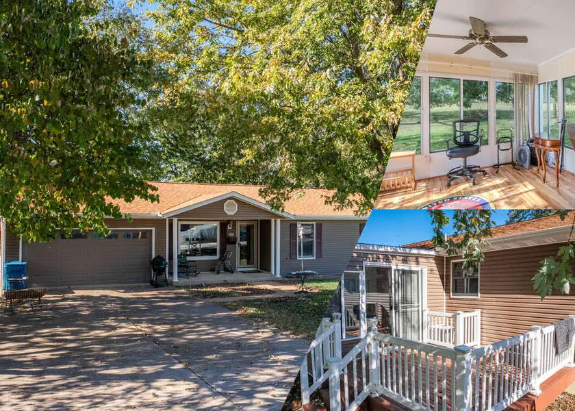 Welcome home to this beautifully maintained 3-bedroom, 2-bath residence offering comfort, style, and thoughtful updates throughout. A striking decorative glass front door opens to a spacious living room highlighted by a vaulted ceiling, a large picture window, and gleaming red oak wood floors. Quality Andersen windows bring in abundant natural light. Enjoy year-round relaxation in the bright 12x12 sunroom or step outside to a generous deck overlooking the level, easy-care yard. The primary suite features a private bath with a no-step shower, while the second bath includes a convenient step-safe tub. Additional features include a reverse osmosis water purification system, utility cabinets in the garage, and a handy outdoor tool shed. Recent updates provide peace of mind the roof and HVAC system are approximately five years old, and the gutters are fitted with a leaf guard system under warranty.