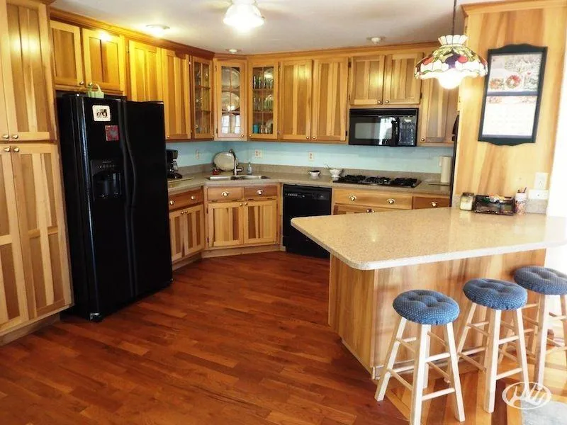 - The home has all oak and poplar hardwood floors, poplar kitchen cabinets and walnut staircase