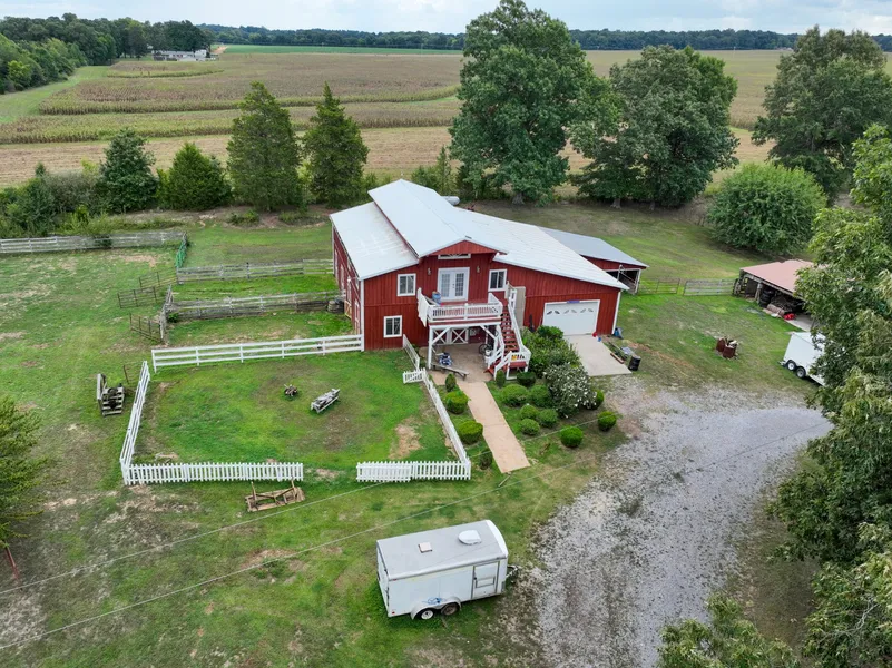 Looking for a unique BARNDOMINIUM? Here it is! This home sits on 5 horse stalls along with 21 acres of beautiful land, perfect for farm animals or hunting (about 10 acres is wooded). Electricity does run to out building adjacent to home. Floors in main living areas were recently resurfaced and stained. Decks were sanded and restained as well.