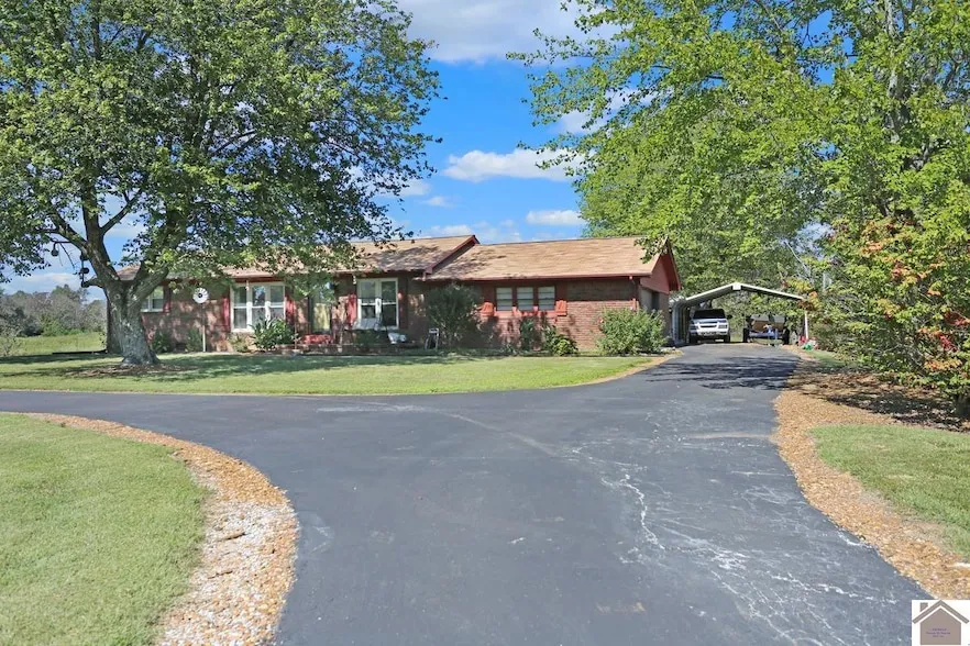 Located in the county Minutes from KY Lake! This lovely 1.60 acre property offers low maintenance with a paved driveway, workshop, attached garage, outdoor patio and carport. Situated just off of Hwy 80 offering quick access to both Murray and the lake! If you're looking for privacy and convenience, this is it!