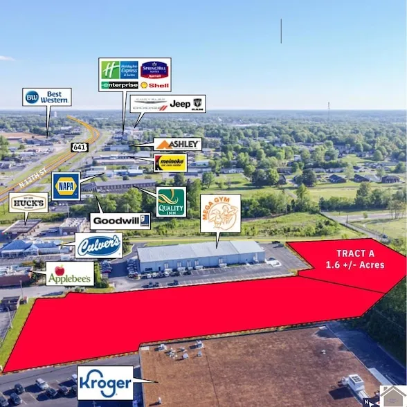 This desirable 1.6+/- acre level lot is submersed in the middle of Murrays main retail and restaurant corridor with high daily traffic counts. It's just off of Hwy-641/N12th located adjacent to Kroger and Mega Gym and Murray State University within .5 miles. Neighboring businesses include a vast array of retail, restaurants and professional offices. Owners will subdivide the lot to fit buyers needs. Zoned commercial. Don't miss this opportunity for one of Murrays premier (and rare) pieces of land left in this heavily trafficked, high visibility area. Also available for purchase(together or separately) is Tract B measuring 2.9+/- acres(see MLS #126826).