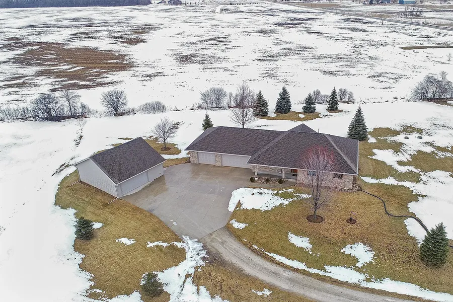 JUST NORTH OF TOWN is this extremely well-maintained country ranch on over 2.6 acres & tucked off the main road for additional privacy! Built in 2004, come home to a spacious home w/an additional 28x32 detached garage for all your toys! The home has a large foyer that opens into the great room w/gas fireplace & vaulted ceilings PLUS has an opening w/kitchen & dining. Formal dining is very spacious & features patio doors out to a patio. The kitchen has snack bar & appl included. 1st-floor laundry room & space for a freezer. The attached garage has a wheelchair ramp in garage. Master suite w/full bath w/whirlpool tub and a walk-in closet. LL is totally open to do whatever you like. Poured walls. Hilbert Schools