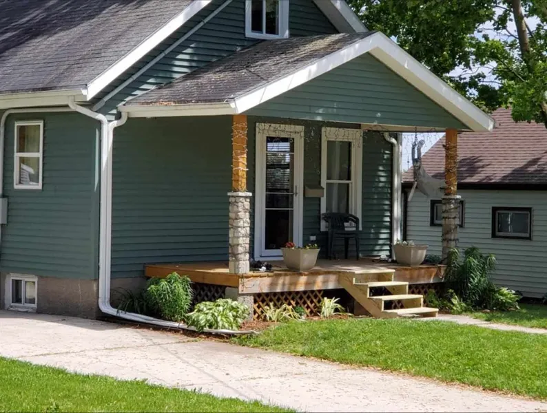 Come see this adorable 2 bedroom, 1.5 bath home with a 3.5+ car garage!!! Featuring, beautiful hardwood flooring in living room, Bright eat-in kitchen with tile floors, patio door overlooking huge deck and yard, Updated bath with heated floors, upstairs featuring HUGE bedroom with walk-in closet and tons of storage. HUGE garage with room for all your toys! Vinyl windows, updated water heater, 200 amp service. Near Park & Schools!
