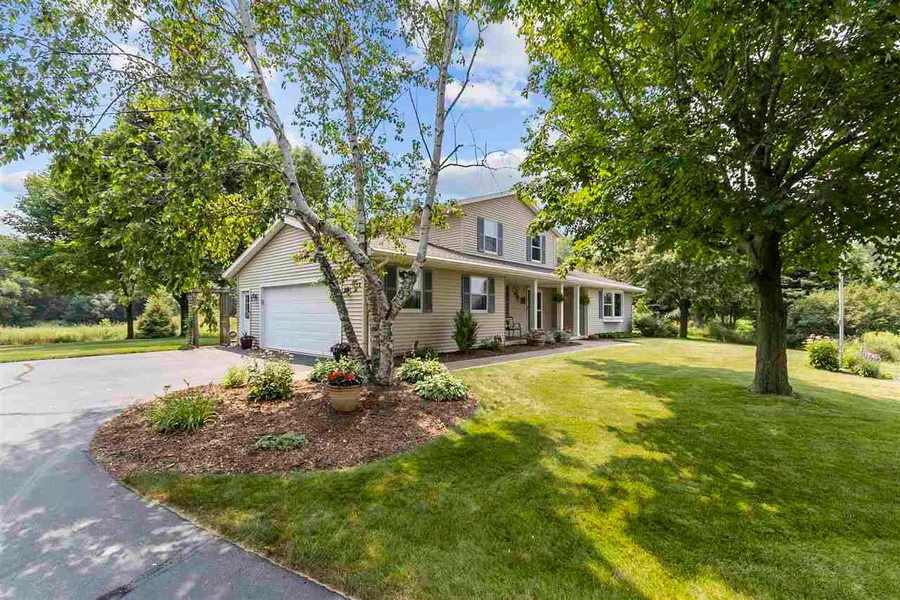 A gem of a home nestled on 6+ secluded wooded acres a mile from town! Meticulously maintained/updated 2-story/1-owner home, 3 bedrooms, 2 baths, 2.5 car garage. It boasts hardwood floors, wood-burning fireplace, high-end stainless steel appliances; granite countertops, and living room with breathtaking views of sunsets. A 14'x16' 3-season porch is a relaxing setting to view the magnificently landscaped back yard and woods. There is a 15'x30' outbuilding with attached lean-to for additional storage space or hobby farm potential. New roofs May 2021. Offer reviews start 8/10. Open House-Sunday.