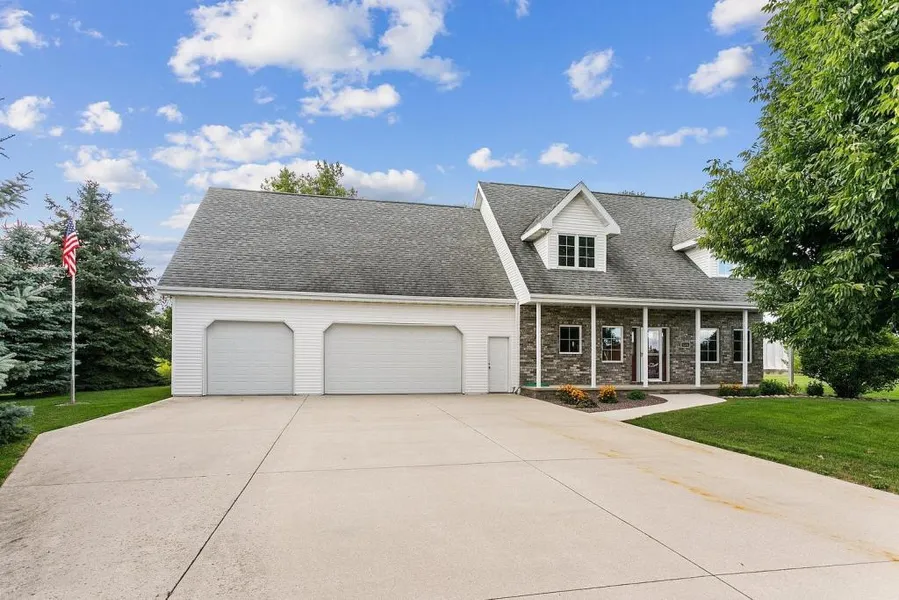 GREAT CURB APPEAL as you approach this stately cape cod features a large front porch to decorate or relax on! Located on a cul-de-sac in Hilbert with over .84 of an acre lot which you can look at from your large patio or covered back port! HUGE garage w/floor drains, deep storage closet, tall garage doors PLUS stairs to lower level from the garage. Beautiful mudroom w/full bath lockers plus a wall of storage is ideal when you come in the back door! Gorgeous kitchen w/GIGANTIC granite center island which is ideal for casual dining or perfect for those holiday gatherings and where to put the food?! Endless HICKORY cabinets quartz countertops...WOW! The formal dining room off the kitchen could be a 1st-floor office. The living room has a gas fireplace, a patio door to a spacious backyard with no neighbors! Upstairs has a great landing spot for an office or curl up with a good book reading area! 3 spacious bedrooms a full bath. Open railing to the foyer below for the 2-story foyer. BONUS! 30x16 unfinished bonus rm above garage! Finish for more living space or make it into a suite? 6-panel doors, tile floors the central vac system (stubbed in). A long list of updates makes this a well-kept home. New windows are coming up for upper-level rooms in October. 48-hour binding no binding on weekends.