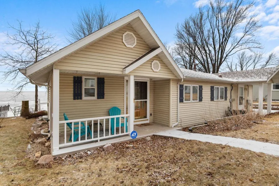 A GREAT LAKE WINNEBAGO value you don't want to miss! East Shore get-a-way w/the natural escarpment views & just S of High Cliff State Park. Enjoy 74' of frontage w/a dock PLUS an upper patio to enjoy the endless, unobstructed SUNSETS! 2 lots totaling over .64 acres (includes the backlot w/28x36 detached 4-car garage ideal for all the water toys + parking). Ranch hm has over 1657SF to spread out in & you will fall in love w/the views from all the windows overlooking the water. PRIMARY suite w/your own private exit to the updated deck, vaulted ceiling, FULL bath w/jetted tub & closet space...THE VIEWS are incredible!! Open concept w/LR-DR-KT-sunroom is nice for entertaining. 2.5 garage by house, so 6 cars total! PRE-CERTIFIED w/hm inspection. Use as an additional income!