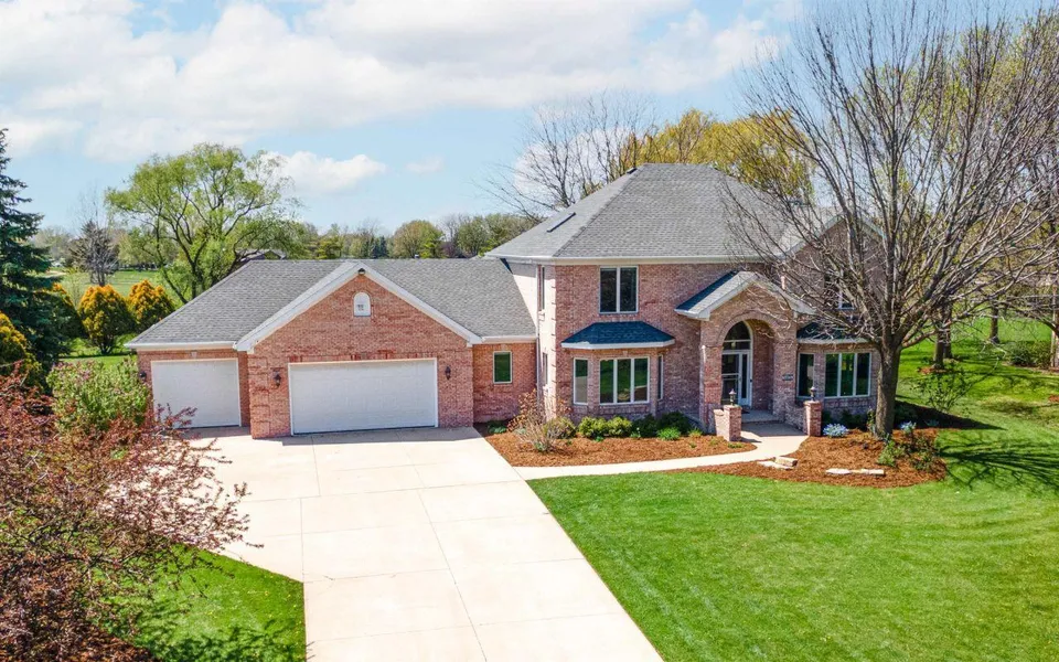 Nestled on a beautifully landscaped 1.31+/- acre lot along the golf course, this stunning estate features a private pond & peaceful views. Walking distance to Lake Winnebago & High Cliff State Park! Inside, enjoy a grand foyer w/ soaring ceilings & chandelier. The main level offers hardwood floors, formal dining, spacious living room w/gas FP, built-ins, & large windows. A dedicated office adds flexibility. The kitchen includes ample cabinetry, island, dbl ovens, & breakfast nook. The vaulted 4-seasons room w/ skylights & wet bar is perfect for entertaining. Upstairs are 4 bedrooms. The primary suite includes a gas FP, dual closets (one walk-in), & en-suite bath. Second bath has dual sinks & tub. Finished LL includes rec room, shelved storage, & full bath. Includes 14-month home warranty.