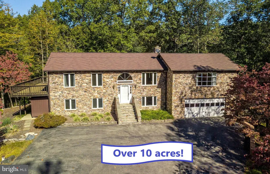 Living life on the lake... Must see this spacious lake front 2800 sq ft home with 4 bedrooms (2 master suites) and 4 full baths on almost 11 acres!! Absolute privacy situated at the end of a long-paved driveway surrounded by nature. Featuring an open concept living area w/ gleaming hardwood floors throughout ~ kitchen with stainless steel appliances and lots of cabinet space for all your cooking and storage needs. Multiple rooms lead to massive wrap around deck and gazebo, perfect for entertaining. HUGE basement with space to make into your own featuring a wood burning brick fireplace! Additional room in basement with full bathroom! Additional perc~most likely sub-dividable. Stairs off of deck leading to the lake! Bring your kayaks and small motor boats, you don't want to miss this one!!!