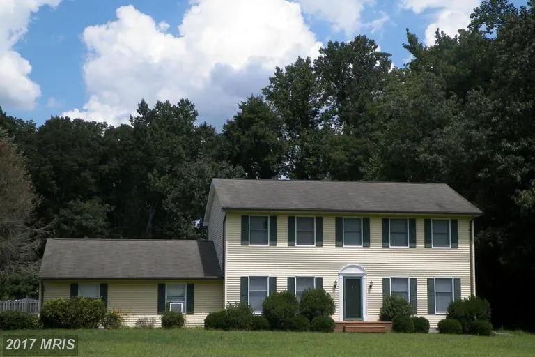 Colonial home on flat lot of over 3+ acres features 2 car detached garage, 2 car attached garage, fenced inground pool w/ diving board, 3 spacious bedrooms, remodeled kitchen, wood and ceramic flooring, deck, gazebo, fire pit, shed, riding lawn mower, newer dual zoned heat pumps, & community dock and boat ramp. As is home needs kitchen counters, crown molding, and new carpet to make it complete.