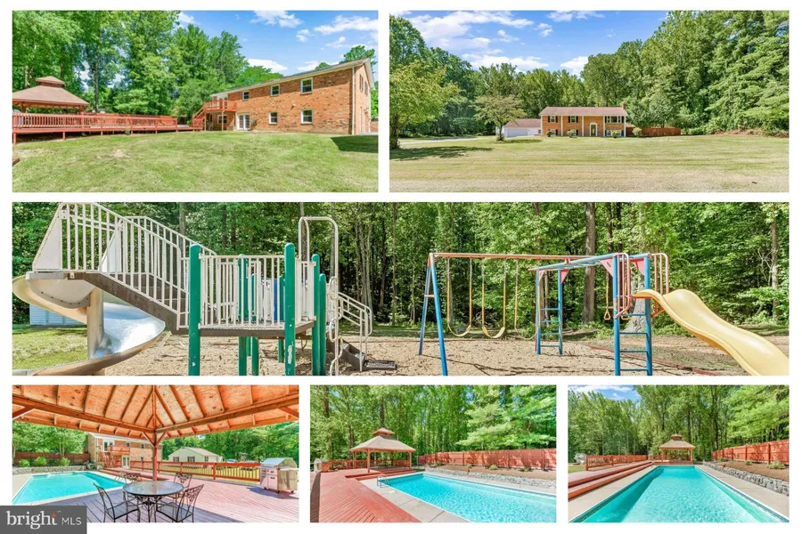 IN-GROUND POOL!! COMMERCIAL PLAYGROUND!! Stately 2600 sqft 3 Bedroom 3 Full Bathroom Split Foyer on 4.5 Acres on a quiet street surrounded by homes on large lots in Huntingtown! As you approach this beautiful property you are welcomed by large lot w/ a flat, open grassy area surrounded by established trees. The paved driveway leads you to an open parking area adjacent to a detached and attached garage. Approaching the front door you will notice the porch runs the full width of the house protecting you from the weather & adding a stately look to the elevation of the home. Upon entering the house you are greeted by a beautiful hardwood staircase with wrought iron stair rails leading to the main floor. The main floor has an open concept living room, dining room and kitchen. The kitchen is equipped with stainless steel appliances, updated flooring, updated hardware, & silestone countertops. Just outside the dining area is a small deck with stairs that lead to the pool. The primary bedroom is ample sized with an updated en-suite primary bath. Two additional bedrooms & a updated hall bathroom complete this floor. The lower level home to a large open concept rec area w/ a wet bar, billiards area, brick fireplace w/ wood stove insert, a nicely updated full bathroom, & a large mudroom/laundry room. The lower level has walkout access on 2 sides and is surrounded by windows which allow in plenty of natural light. An attached oversized 1-car garage completes this floor. Just off the mud room door is detached oversized 2.5 Car Garage perfect for your projects! Most of the yard is LEVEL and allows for many uses. A large commercial grade playground area is great for the little ones. The main event on the exterior is the inground pool that is wrapped with a large deck/gazebo area! This space is perfect for entertaining! The pool will stay warm with a low cost because of the solar heating system! This home has many great features and is sure to sell quickly! Don't hesitate and set up a showing TODAY!!!