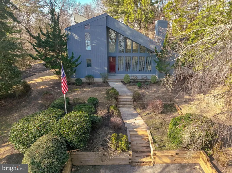Beautiful contemporary one street over from the Chesapeake Bay! Great architectural design. The great room has cathedral ceiling & lots of windows so you can enjoy the sunrise views and watch the ships that sail by. Kitchen remodel included maple cabinets, granite & hardwood flooring. Main level has a full bath & den. Two bedrooms & full bath on second level. Second staircase to master suite addition. Pella windows. Oversized garage and storage room. Detached shed. Two attached sheds. Wrap around deck. Dual zone HVAC. Gas fireplace. Cove Lake neighborhood civic association gives you private beach access on the Chesapeake Bay, Boat launch, & Lake for paddle boarding or kayaking. New septic being installed.