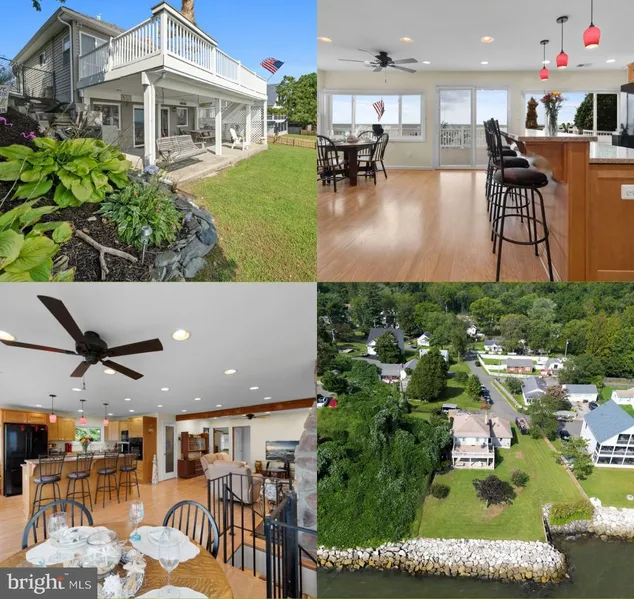 UNBELIEVABLE expansive panoramic views of the Chesapeake Bay! Get settled in your new waterfront home in just enough time to enjoy the rest of the season! This beautiful almost 2100 sq ft home in Dares Beach features 3 bedrooms, 2 full bathrooms, and tons of recent updates! Make your way into the breezeway where you can either enter into the main level of the home on the right, detached garage on the left, or continue past storm door to your waterfront oasis. When entering the main level door, you are greeted into a HUGE open rec room with new LVP flooring just installed this year. Enjoy entertaining or game nights in this spacious and functional space! Off rec room is sliding glass door leading to covered patio. Primary bedroom also on main level boasting new carpet, 2 closets, and attached primary bathroom with large walk-in shower and updated tiling. Head up the spiral staircase to an open concept with kitchen overlooking family room and breakfast nook... TONS of natural lighting and TONS of additional recessed lighting! Kitchen boasts a full wall of windows overlooking the Chesapeake Bay, spacious kitchen island, sliding glass door just replaced in 2021 leading to HUGE composite with built in bar, and a walk-in pantry. Upper level also includes a family room, stone fireplace, nicely sized bedroom #2 and #3, and an additional full bathroom. Other features include... main level laundry off primary bedroom, NO HOA, detached 1 car garage with tons of upper level storage, walkable community beach access to the Bay, BRAND NEW carpet in all of the bedrooms and BRAND NEW tankless water heater, HVAC updated in 2018, composite deck and new patio in 2009. Schedule your showing today!