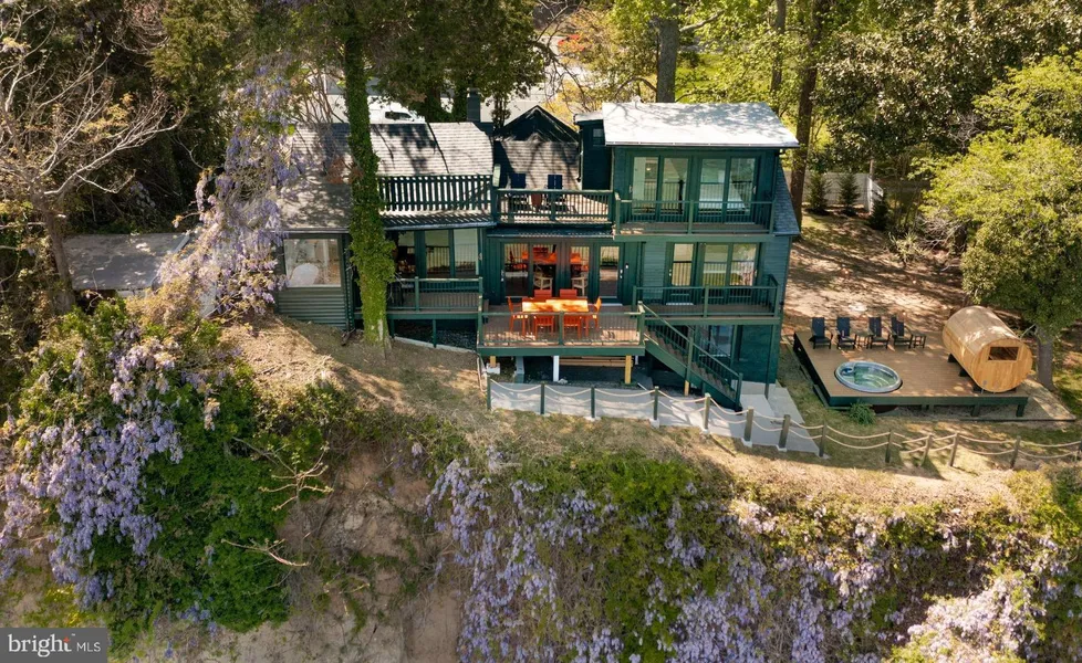 Renew your mind and body in a panoramic sauna overlooking the water and gaze up at the stars from a sunken jetted outdoor hot tub. This property has both indoor and outdoor dining areas, luxe bathrooms, and a treehouse-like rooftop deck where you can enjoy your morning coffee. Gorgeous views abound from this stunning Bayfront home with 120 ft of waterfrontage. Sit back and watch the ships go by, enjoy breathtaking sunrises, and savor the picturesque views. This coastal home has five bedrooms and four full bathrooms and shows like a model home. Situated on a 1/3 acre lot with a fully fenced waterside yard. A few steps inside the front door, the great room has a wall of glass that lets in tons of light and allows for sweeping Bay views This is the heart of the home with a seamless interplay between the kitchen, dining area, and seating area with direct access to the waterside deck. The NEW kitchen has quartz counters, pretty pendant lighting, and top-of-the-line ss appliances. This level also features a full bathroom and a bedroom, which could easily be a home office. The primary bedroom has private access to the waterside balcony, a huge walk-in closet, and an updated en-suite bathroom with a soaking tub. Two additional bedrooms, a full bathroom, and a laundry area are also on the entry-level. The top floor of the house offers an enormous room that could be a fifth bedroom, playroom, or a home office. with a private bird's nest bathroom and UNIQUE outdoor shower. This space has a cozy window seat that overlooks the water.