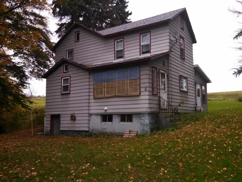 54.8 acre farm with 2 story, 5 bedroom farmhouse, large bank barn, 32x52 implement shed, 24x40 four bay garage and other outbuildings. Approx. 50 acres tillable currently in hay. small pond and orchard on quiet rural setting property has a lot of potential.