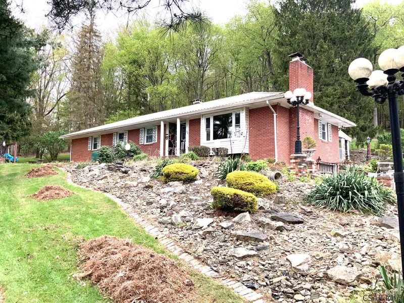 WOW! Country Living! On 4 acres with view! In ground Pool with newer liner. solar heat.Circular driveway. All plaster interior with lots of hardwoods! Enclosed rear porch with slate floor. Newer windows and furnace, Central A/C and roof! 2 car tandem integral garage. Work shop in basement and 2nd kitchen. Stove an range. Check it out! Brick and Stone construction!