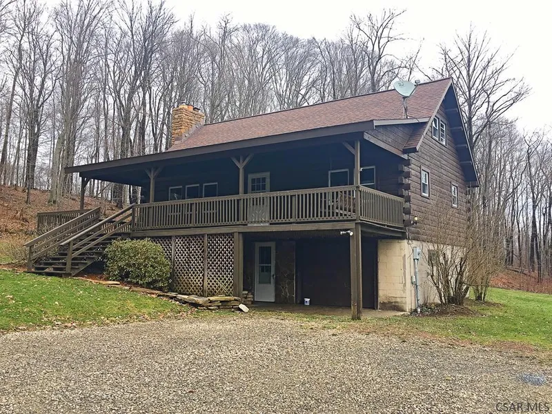 Forest Hills Log Cabin situated on a private 3.6 acre lot. This 3 bedroom home has 2 stone fireplaces a finished family room on the lower level, a spacious loft and 2 baths. This home has a 1 car integral and a detached 24x32 garage with 2 bays on the lower level and 1 bay and workshop on the 2nd level. Located minutes from the airport.