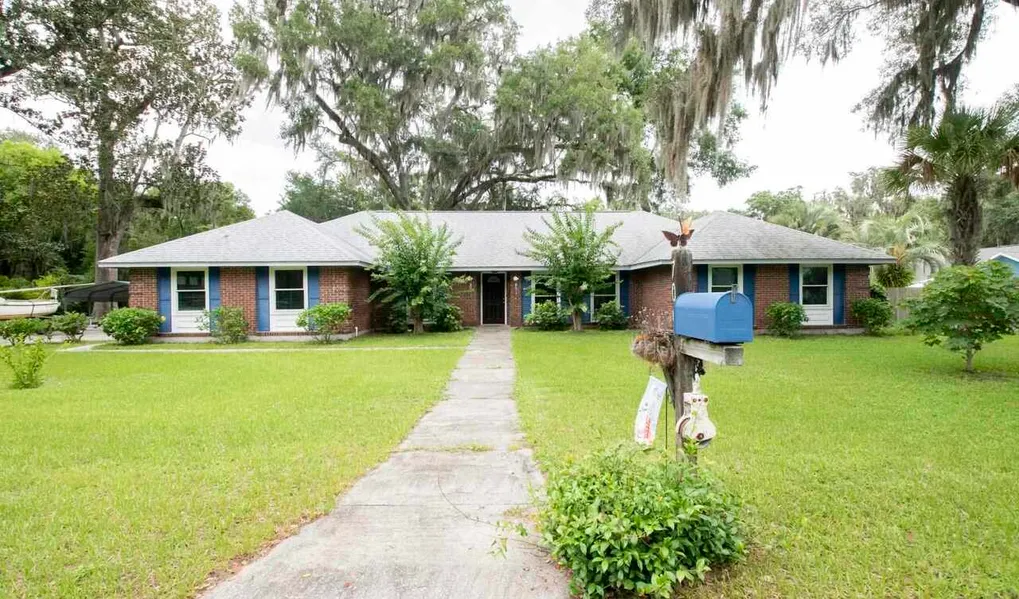 Charming brick home nestled in the heart of the downtown St Marys area. This beautiful spacious home is a 4/2 with plenty of room to grow. Foyer entry opens up to a formal dining area and a flex space or bonus area that can be used as a office or great room. The eat in kitchen overlooks the private fenced in yard. Decorative cabinets and new flooring in the kitchen and great room area. Masonry brick fireplace in the great room with double french doors to the back yard patio. All bedrooms have new carpet and fresh paint. This home sits on a 1/2 acre in downtown St Marys. In addition to the double car garage there is a covered car port area for boat or car storage.