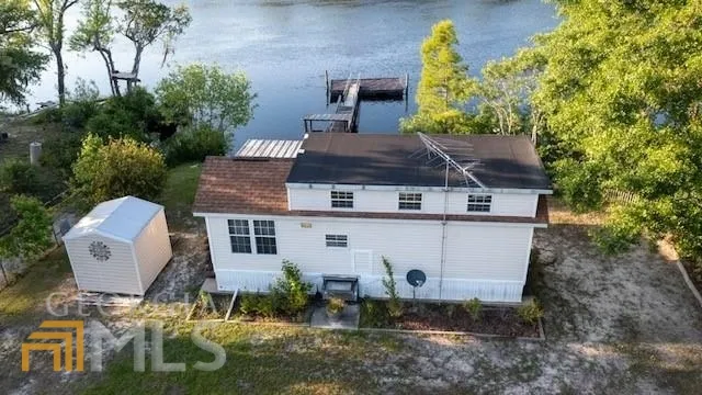Riverfront home on the Satilla! 73 feet on the deep water with a dock that has a fish cleaning area. There is power and water at the dock and a floating dock. Boat ramp is located on an adjoining property. The 2005 Park model mobile home features one bedroom and one bathroom and an open kitchen and eat in area. Fully furnished and all you need to bring is your fishing poles. Den has a vaulted ceiling with views of the water through the sliding glass doors. There is an upstairs loft for storage. There are two sheds on the property and one has a washer and dryer area. Enjoy the peacefulness of the Satilla River from your covered porch.
