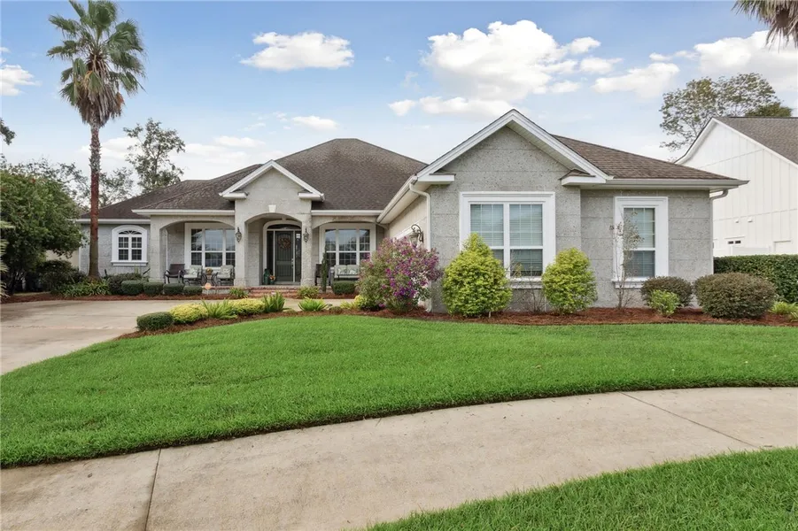 Discover Your Dream Home in Fiddlers Cove. Step into a world of elegance with this stunning residence, boasting just under 2,600 square feet of refined living space. This remarkable home features three luxurious bedrooms, each with its own private bath, plus an additional half bath for guests. Enter through a grand foyer adorned with exquisite molding and crown accents that flow throughout the entire home. The separate dining room and dedicated office area offer both sophistication and functionality, perfect for entertaining or remote work. Experience the grandeur of triple tray ceilings in the dining room, great room, and opulent owner's suite. The great room showcases solid Acadia hardwood flooring, creating a warm and inviting atmosphere. The advanced AC system is equipped with twin scroll compressors and a digital thermostat, ensuring optimal comfort with humidity control. The owner's suite is a true retreat, featuring a spacious bath with a fully tiled walk-in shower, a luxurious jacuzzi tub, and two generous walk-in closets. Step outside to the front porch and lanai, enhanced with Shark coating for durability and style. Enjoy tranquil fountain views from the serene lake behind the home while relaxing on your expansive screened-in porch. Dont miss the chance to make this timeless classic your own!