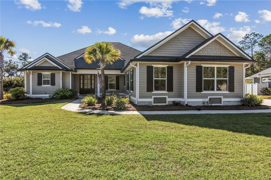 Welcome to the most exquisite like brand new home in the Winding River community, where elegance meets comfort. This home was built by Bent Pine Construction in 2020. This stunning 4-bedroom, 3-bathroom residence is thoughtfully designed with custom features and beautiful details that truly set it apart. Step inside to a foyer that opens to a spacious floor plan enhanced by high ceilings and engineered wood flooring throughout (cozy carpet in the bedrooms). The expansive great room showcases a striking cypress wood inlet trey ceiling, offering a warm and inviting atmosphere perfect for gatherings. The heart of the home, the kitchen, is a chef's dream with gorgeous quartz countertops, custom soft-close cabinetry, and a generous walk-in pantry complete with wood shelving. The laundry room is equally impressive, featuring ample cabinetry for added convenience. Retreat to the owners suite which opens to a luxurious bathroom designed for relaxation. Enjoy double vanities with granite counters, a massive master closet, and a beautifully tiled shower equipped with two shower heads and a comfortable sitting bench. Natural light floods the home, creating a bright and airy ambiance. The panoramic stackable sliding glass doors seamlessly connect the indoor and outdoor spaces, leading to a spacious screened back porch. With a 2.5-car garage and convenient walk-up attic stairs for additional storage. Located in Winding River, you'll enjoy fantastic amenities including The Savannah Clubhouse, a resort-style swimming pool, soccer and sport courts, and sidewalks throughout the community.