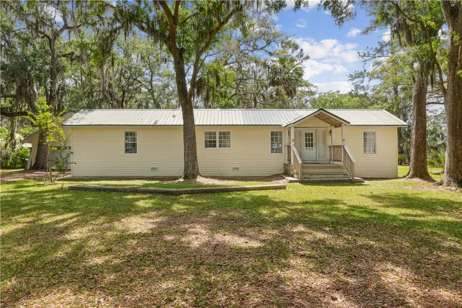 BACK ON THE MARKET AT NO FAULT OF SELLER AND WITH BRAND NEW FLOORS!!!!!! Discover Your Dream Retreat at Harrietts Bluff! Embrace the serene lifestyle you've always desired just a short drive to the Harriett's Bluff boat ramp and fishing pier along Crooked River. This charming 3-bedroom, 2-bathroom home, nestled on a generous .83-acre lot with stunning marsh views, offers both tranquility and convenience. Step inside this beautifully renovated mobile home, where modern upgrades seamlessly blend with timeless appeal. The spacious addition expands the living area to 1,211 square feet, providing ample room for relaxation and entertaining. Enjoy the benefits of a metal roof, updated plumbing, and energy-efficient smart home appliances. The property features a remarkable 24x47 garage/workshop, thoughtfully connected to the main home by a covered porch. The shaded, fenced yard, adorned with mature trees, creates an idyllic outdoor oasis for family gatherings or quiet evenings.
