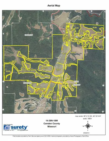Cattle Ranch - Show Place - Getaway - Lake of the Ozarks. This 1190 acre cattle ranch sit just a few hundred yards of Lake of the Ozarks. This cattle ranch has highway access splitting the property with Lower Prairie Road splitting the property. It features one older house and cattle building. One nice shop building half heated and concrete floor. Nice gravel parking lot and ponds surrounding the lots. Nice level laying, very productive bottom land on the east side. Its currently used for haying purposes. Spring fed rock creeks running throughout the property. Grass has a very good percentage mixture of clover legumes in it. This place has been well taken care of it and manicured by a proud owner. The balance is in Oak timber to offer some excellent hunting opportunities. The owners would split the property allowing it to be sold in smaller tracts. This property at $1554 would be one of ...