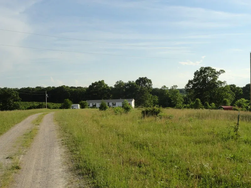 The property spans 120 acres and offers a blend of 72 open acres and 40 wooded acres. It's fenced around the perimeter with additional cross fencing. The terrain varies from level to rolling, featuring trails throughout. There are two separate manufactured homes, each with 3 bedrooms, 2 bathrooms, full unfinished basements, and 2-car garages. The total square footage includes both homes. The property has its own well and septic system for one home, while the other is connected to a lagoon. An outbuilding measuring 30x50, a Quonset, is equipped with electricity and a concrete floor. The land boasts a variety of wildlife, including deer, turtles, and rabbits. The grazing pastures are covered in Fescue grass, complemented by Hickory and Oak trees. Additionally, there's a drilled well in the field, although it lacks a pump. The property features a pond, spring, corral, a lean-to shed with water and electric, and borders a county road.