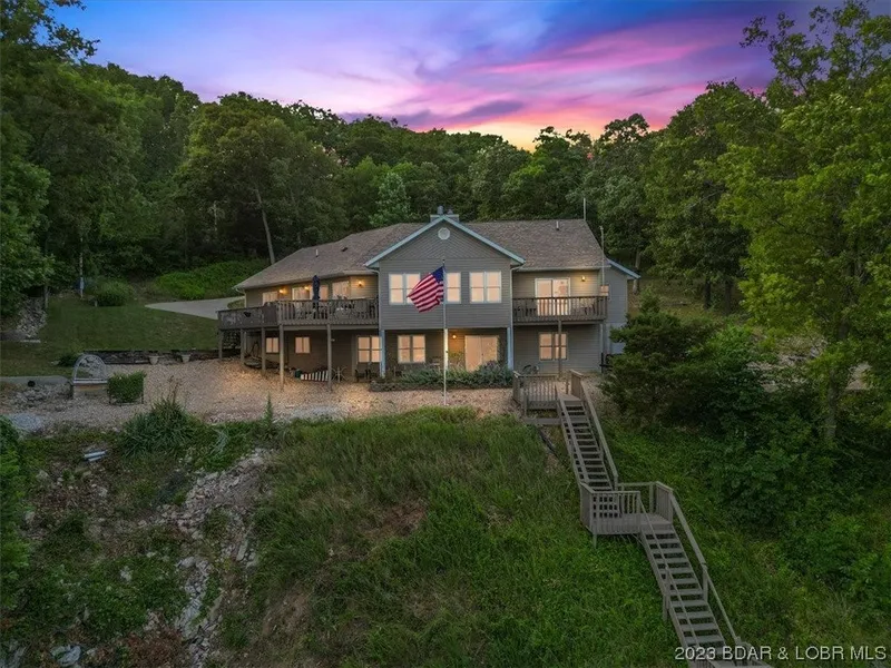 Check out this quality built home nestled on an acre lot with a spectacular view. Step into an open livingroom with a beautiful white fireplace. Living area flows into the dining area and a great kitchen. Plenty of cabinets, double oven, cooktop stove with stainless steel vent, granite counter tops. Bar height countertop makes visiting a breeze when cooking. Just off the kitchen is the master suite with full bath including walk in shower and jetted tub. The walk in closet is large enough to hold a set of bunk beds. Main floor laundry room. Lakeside Guest bedroom with balcony. Full bath. Also enjoy enclosed sun room. Lower level offers a large family room, 2 guest bedrooms and full bath. An incredible storage area, walk in safe and a large craft room. Lower level patio. A 2 well dock with swim platform competes the picture. Original floor plans are available, Currently used as VRBO part t...